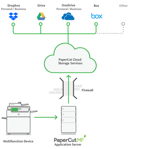 PaperCut MF uses a cloud service to deliver Scan to Cloud Storage because it allows us to provide the breakthrough one-click Scan to Cloud Storage solution.